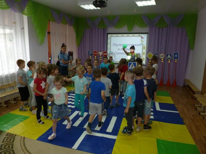 Вместе с инспектором и сказочными героями дети учились правильно переходить улицу,изучили значения цветов на светофоре и поиграли в познавательные игры.